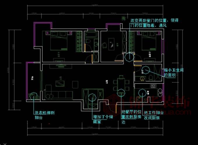 戶型缺點:但是餐廳和廚房的關系過于松散,北面的工作陽臺有點浪費,儲藏空間偏小,衛生間過大。
